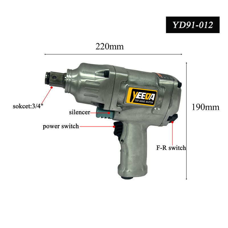 Esta chave de choque de 3/4 polegadas de alto desempenho possui um projeto estrutural de martelo duplo que fornece potência e torque estável.Ele lida facilmente com desmontagem e montagem de parafusos de grande porte.